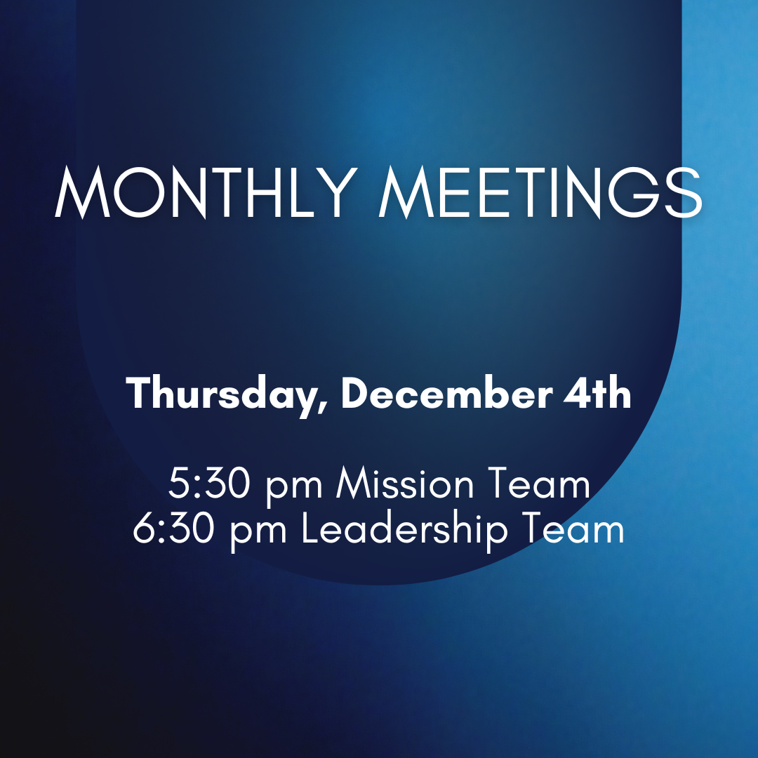 Home Events - Crosspointe Baptist Church Monthly Meetings Monthly Meetings Missions Team 5:30 pm ~ Leadership Team 6:30 pm + Add to Google Calendar + iCal / Outlook export 00 days 00 hours 00 minutes 00 seconds Date Dec 04 2025 Time 5:30 pm Share this event