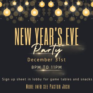 Join us on New Year’s Eve for our annual churchwide party running from 8 pm – 11 pm.